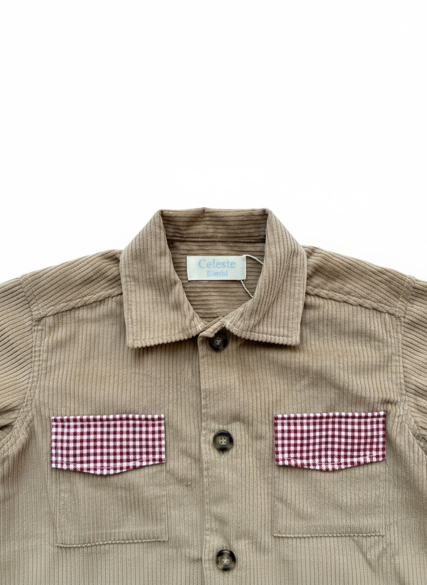 Camicia con vestibilità over in velluto millerighe, con colletto, tasche e polsini in vichy.