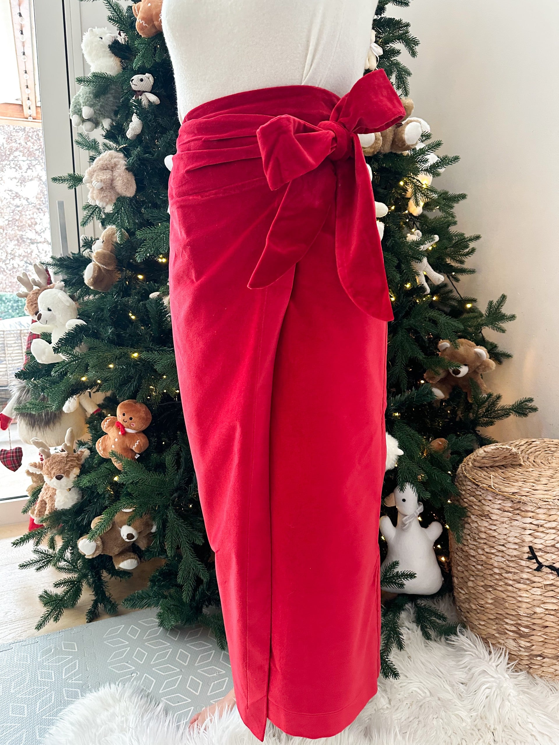 Gonna a portafoglio con fiocco, 100% cotone realizzato interamente in Italia.